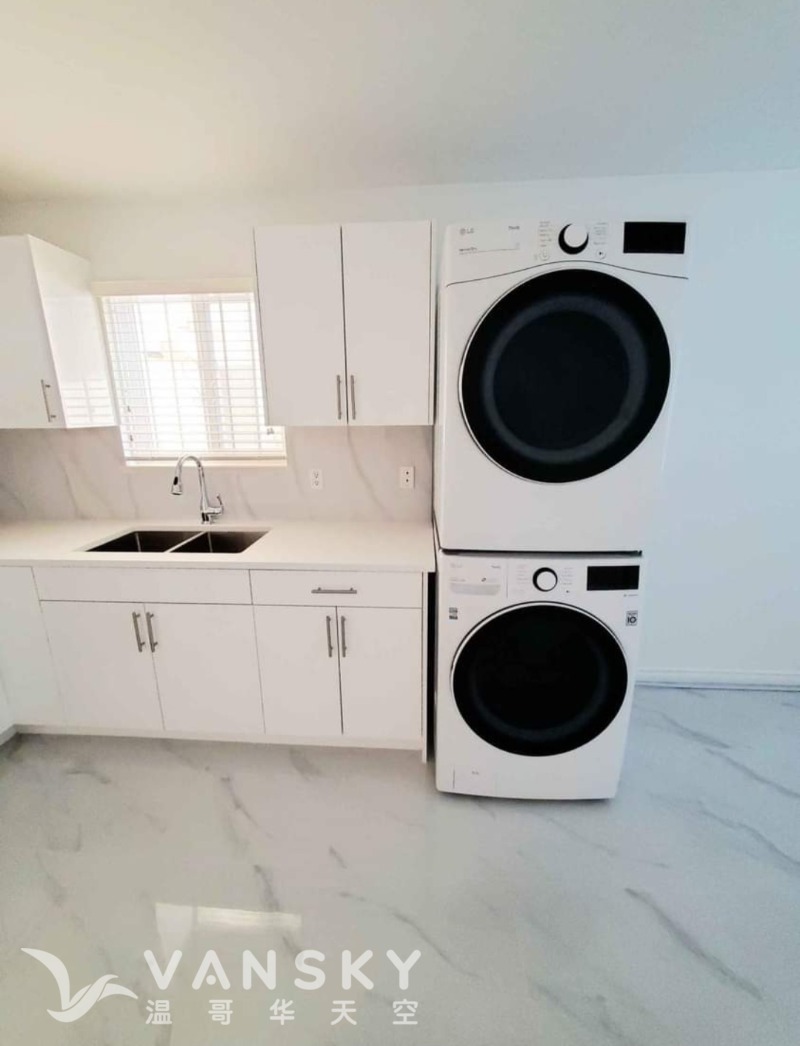 设备:新炉头、冰箱、全新高级LG牌洗衣干衣机、全新抽油烟机