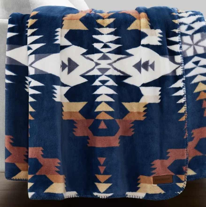 这款毛绒绒的毯子采用柔软的羊毛混纺面料制成,上面印有哈德逊湾的白雪公主图案。