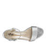 Add a glamourous look to your party ensemble with these women's Taxi silver Angela dress sandals. Ddesigned using a synthetic upper with a glittery finish and a crystal studded strap, these open toe sandals feature an adjustable ankle strap with buckle closure, and a durable outsole with a low block heel.