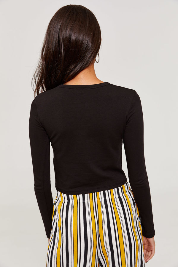Exclusive piece from our Basic collection. Cotton cropped t-shirt. Crew neck. Long sleeves. Classic fit. 95% cotton, 5% spandex. Model is wearing size S.