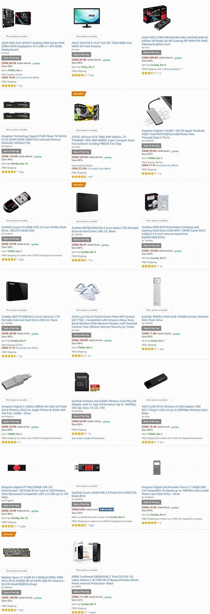 Amazon,精选 Asus、Toshiba、SanDisk、Kingston 等品牌显示器、显卡、WiFi系统、内存、主板、USB-C集线器、硬盘、移动硬盘、U盘、闪存盘等3.1折起,全场满35加元包邮,点击进入购买页面