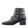 Show off your biker-chic look wearing these women's Fergalicious Isolation black motorcycle booties. Designed with stud-accented straps over a polyurethane upper, these pointed toe booties have a convenient side zip closure, plush fabric lining, and a long-lasting outsole with a mid block heel.