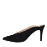 Style up your shoe wardrobe with these women's Vince Camuto Berodie black high heel dress shoes. Crafted with a plush suede upper replicating a sweetheart design, these pointed toe mules are designed with a super-comfortable cushioned footbed and a self-covered heel that is just the right height.