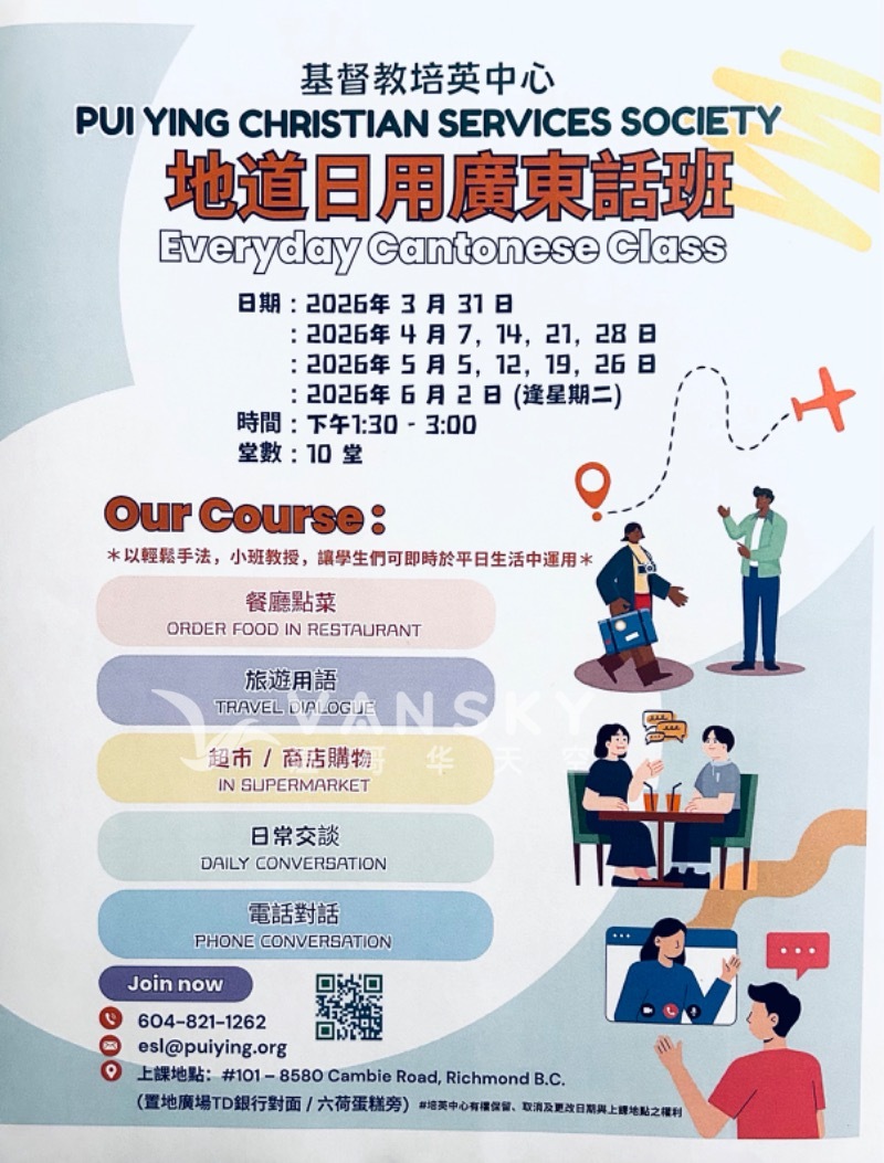 中侨列治文服务中心为大家提供丰富的免费中英文讲座和活动信息,以帮助您更好地融入加拿大生活。如有您感兴趣的话题,欢迎您报名参加。报名链接于讲座日期前一个工作日上午九点或额满后关闭,请您提前登记。