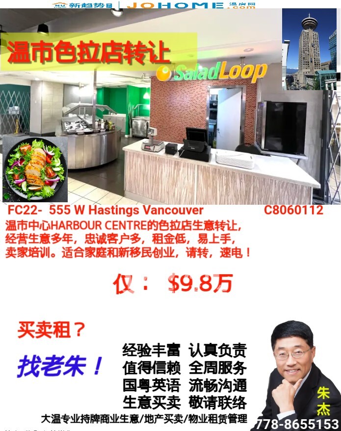 Norman朱杰大温生意转让/房产买卖/租赁管理专家,师从大温30年经验著名资深生意转让专家顾问周萬财( 终身成就奖 桃李遍地 一言九鼎) 专注各种生意及物业买卖,如餐馆酒楼,南北面馆,烧腊店,Food Court,菜肉超市,商铺门店,发廊美容店,中西医诊所,洗脚按摩店,奶茶咖啡店,写字楼等等 经验丰富 认真负责 值得信赖 全周服务 国粤英语 流畅沟通 生意买卖 敬请联络 778-8655153 Norman 朱杰 买、卖家请注意!!! 我们提供免费专业摄影师拍照、摄影、VR虚拟看店服务,不影响卖家生意,不打扰员工,买家可以节省时间马上了解现场实况。 查询更多生意、商业及住宅房源机会,请点击网页: https://www.youtube.com/shorts/Ww71p-6uOak