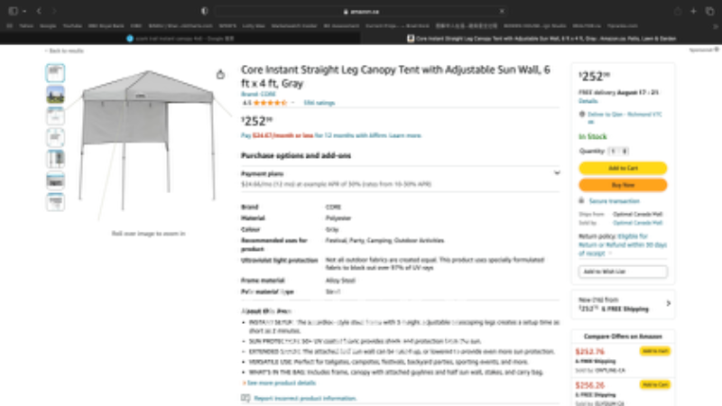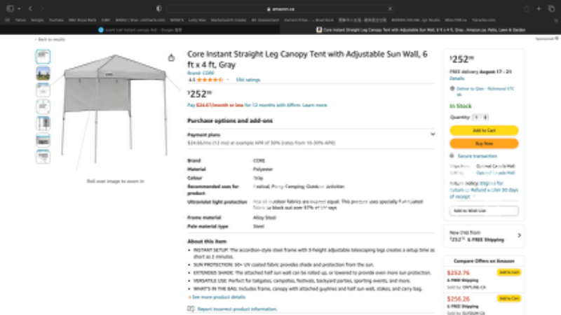 9成新,极易安装两人用遮阳蓬, 仅80刀