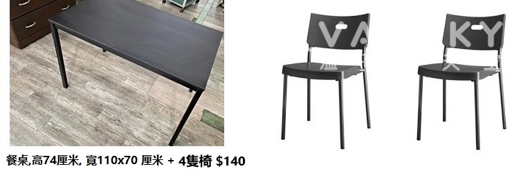 99成新白色長方形 餐桌120*70cm 高73cm +4黑色餐椅$140. 可以2-6個人用餐