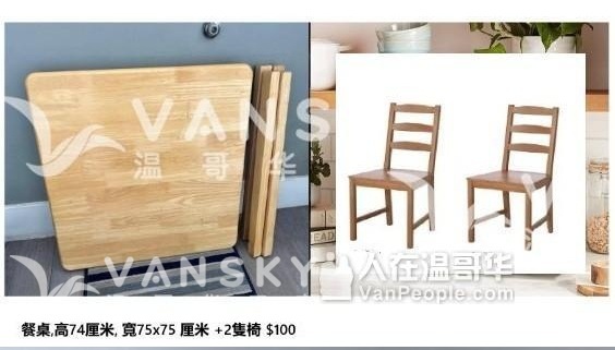 9成新木色餐桌,高74厘米, 寬75x75 厘米 +2隻椅 $100 .