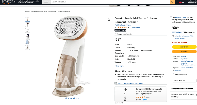 Conair 手持蒸汽熨斗(几乎全新)