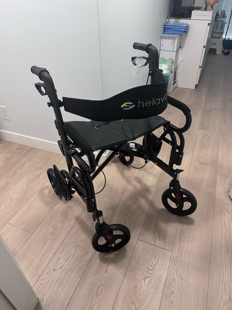 从Amazon上买的老人用轮椅助行器。 GoPlus。 只用过一次。 原价200多元。 要价100元。 可议价。 状态良好如新。质量可靠。 可用作助行器, 也可做轮椅, 老人可以坐上休息。 可收起