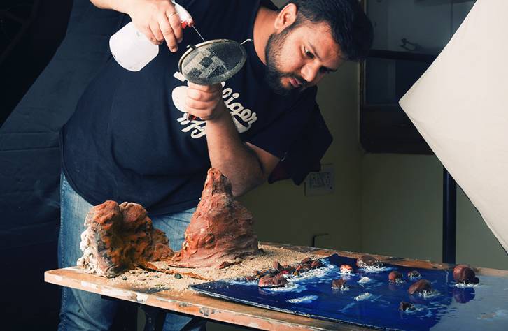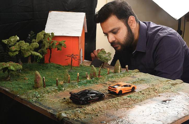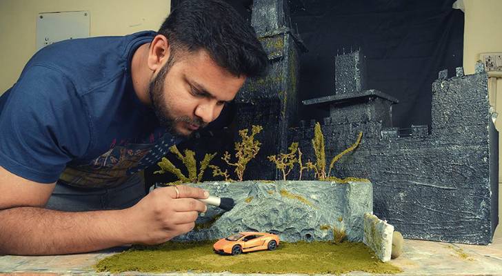 因为这些让人瞠目结舌的场景基本都是这小哥手动完成,而且是在家就创造出来的场景——他是一个微模型摄影师。