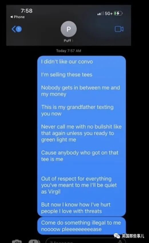 他还和侃爷私聊,让他停止生产这款卫衣,“它伤害了我们黑人”。