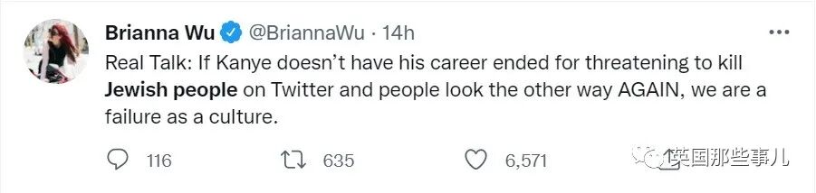 推特的舆论传播速度远比Ins快,没多久“#侃爷”和“#犹太人”上了美国的趋势,各界名人和主流媒体都注意到了。
