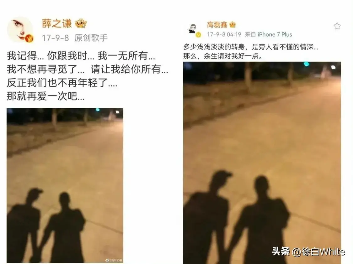2017年上海演唱会,薛之谦当着万人面深情告白:“高磊鑫,我知道你在。”一句喊话,藏尽多年未放下的执念。三个月后,两人直接官宣复合:“那就再爱一次吧。”