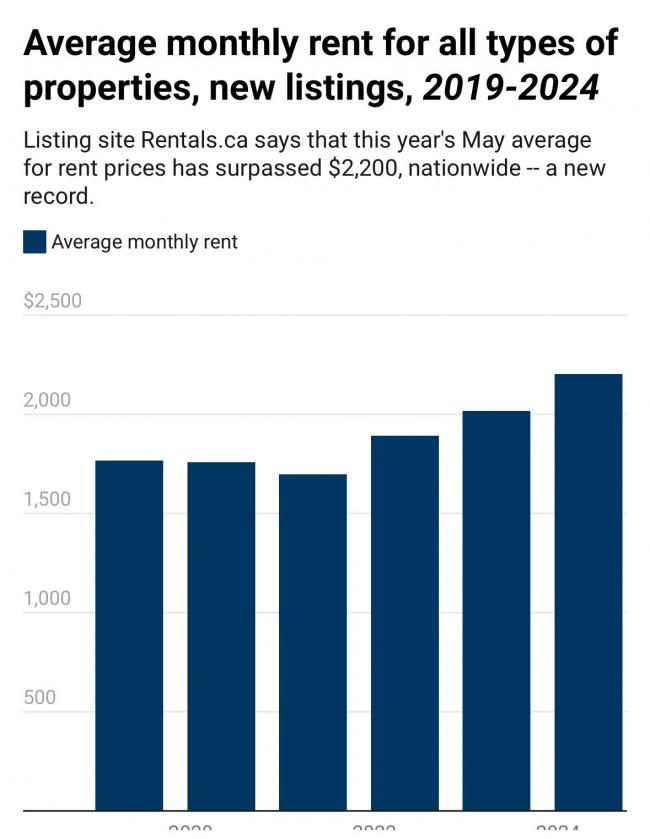 根据一份新报告显示,加拿大 5 月份平均租金超过 2,200 元,创下历史新高。