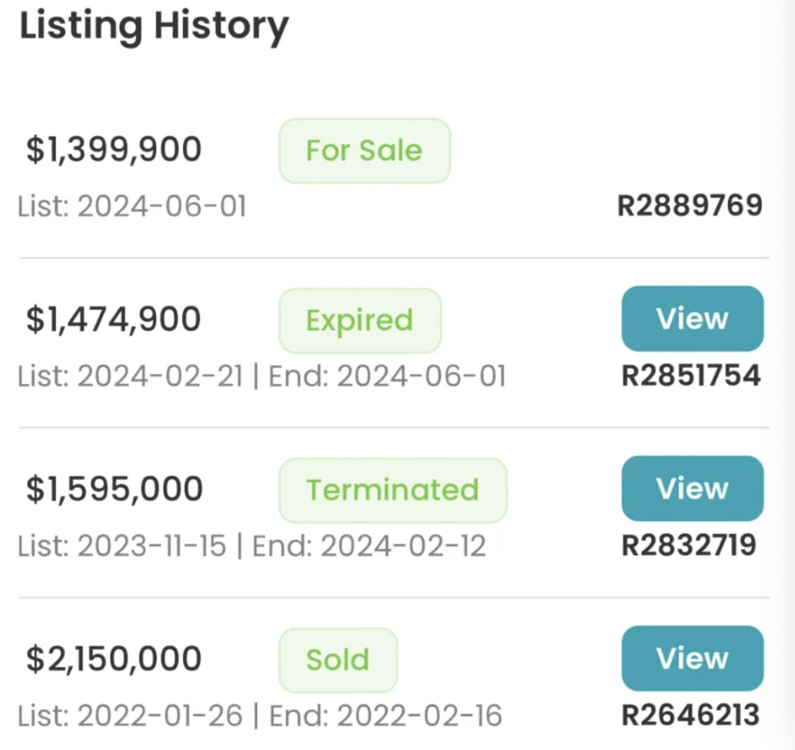 2023年11月15日,这套215万抢来的独立屋挂牌了,但价格只有159.5万。这是回归理性后的正常估值。但此时市场却不够理性了,因为加息带来的心理压力导致没有人愿意在大温外围区域下注。