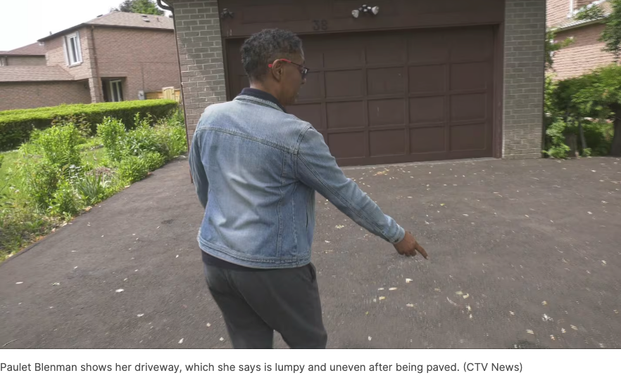 她说,她最终花了6000元重新铺设了自家车道,但她对结果并不满意,并补充说,工人在她家车道尽头留下了一大堆沥青,她得自己处理掉。