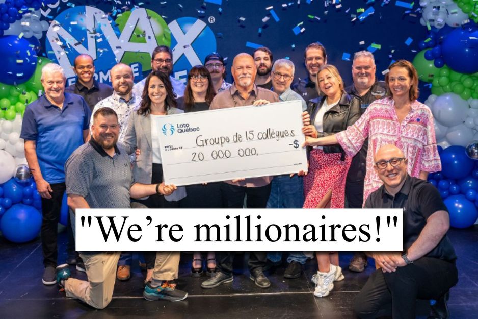 来自魁北克特鲁瓦-里维耶尔的一家汽车经销商的15名员工有一个传统:同事克里斯蒂安·德苏尔沃特会购买15张Lotto Max彩票,并分发给大家,他常常打趣地说:“这是你们的养老金。”