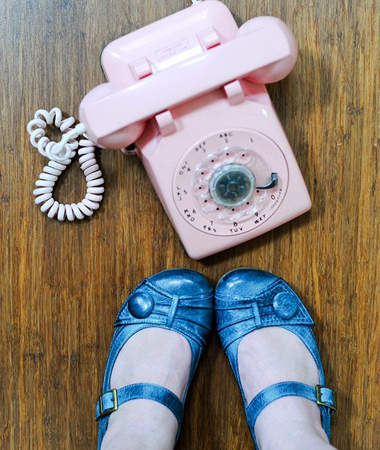 如今的孩子应该认不出来这是一部电话吧。这是一个大型的、笨重的、需要把手指伸进去转动转盘才能拨打的电话。现在的孩子应该都不知道该怎么用。