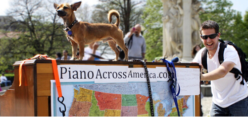 美国男子携钢琴和爱犬周游世界 走到哪弹到哪