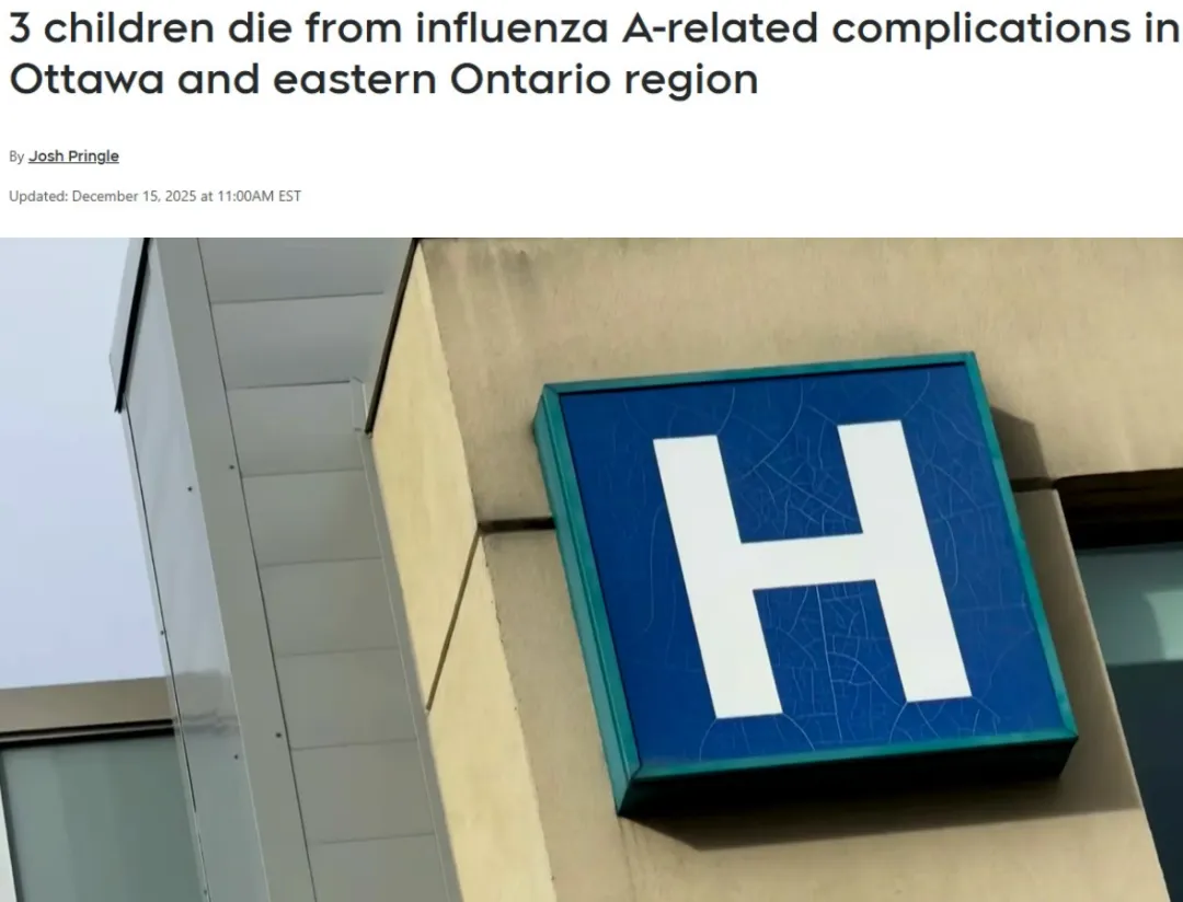 进入12月加拿大流感形势突然“加速”! 已接连传出令人痛心的消息:短短两周内,已有3名5至9岁的儿童因甲型流感并发症不幸离世。 与此同时,儿童医院急诊人满为患,卫生部门紧急提醒——今年的流感季异常严峻,远超往年。 两周内3名儿童病亡 最新消息,渥太华公共卫生局(Ottawa Public Health)今天(周一)发布声明称,在12月前两周,渥太华及东安省卫生局(Eastern Ontario Health Unit)辖区内,已确认3名年龄在5至9岁之间的儿童因甲型流感并发症死亡。 卫生官员强调,这些病例再次敲响警钟:流感并非“小感冒”,对儿童和高风险人群来说,可能带来严重甚至致命的后果。 在联合声明中,渥太华公共卫生局与东安省卫生局直言:“这是一个严峻的提醒。呼吸道疾病季节尚未结束,我们预计今年将是一个极具挑战性的流感季。” 急诊量“前所未有” 渥太华儿童医院(CHEO)表示,截至12月,今年报告的流感病例及相关并发症数量,明显高于往年同期。 CHEO总裁兼首席执行官Vera Etches医生在上周致医生的一封信中指出,本轮流感季“来得早、来得猛”,已导致急诊接诊量达到“前所未有的水平”。医院容量接近极限,医护人员不得不启用临时扩展区域,才能安全照顾患病儿童。 她还呼吁本地医生前往CHEO旗下的 Kids Come First Care Clinic 协助分流病患。该诊所每天最多可接诊70名儿童,目前已延长营业时间并增加人手,以减少急诊压力。 美国已经1200人死亡 不仅仅是加拿大,美国的情况也非常严重,目前已报告约290万宗流感个案,其中住院个案约3万宗,死亡个案约1200宗。 美国疾病控制与预防中心(CDC)说,甲型H3N2亚型流感病毒是该流感季最主要的流行毒株。全美大部分地区的流感活动水平仍在持续上升。 CDC公布的最新估计数据显示,截至12月6日的一周中,美国公共卫生实验室共报告547份流感病毒样本,其中525份为甲型流感病毒,22份为乙型流感病毒。当周美国报告本流感季首例与流感相关的儿童死亡个案。 与此同时,英国也同样正面临一波空前超级流感疫情。 英国国民医疗服务体系(NHS)周四公布的数据显示,流感个案创下历年同期的新高,上周平均每天有2660名病患住院,确诊个案人数在一周内激增55%。 英国卫生部长施卓添(Wesley Paul William Streeting)告诉《泰晤士报》,个案人数在达到高峰前可能再增加两倍。他形容,医院目前的状况已“完全无法令人接受”。 紧急呼吁接种疫苗 也就是说,全球流感传播形势都非常严峻,因此加拿大公共卫生部门也提醒民众,流感季已至,社区内流感传播水平“非常高”! 加拿大公共卫生署(PHAC)最新数据显示,在截至12月6日的一周内,全国流感检测阳性率已升至 20.2%,而两周前这一数字仅为 8.3%,增长幅度惊人。 随着圣诞节临近、家庭聚会和人群活动增多,卫生部门再次呼吁居民尽快接种流感疫苗。专家指出,今年儿童重症病例明显增加,疫苗的重要性尤为突出。 因此,6个月及以上人群均建议接种,同时家长和照护者也应该接种疫苗,这也是在间接保护孩子,同时疫苗通常需要约两周才能产生最佳保护效果,现在接种仍有助于在节假日期间提供防护,且即便疫苗无法完全避免感染,也能显著降低重症、住院及并发症风险。 这样做降低感染风险 在流感高发季,加拿大公共卫生部门给出以下健康防护建议: 勤洗手 未洗手前避免触摸眼、鼻、口 咳嗽或打喷嚏时用衣袖或纸巾遮挡 生病时尽量留在家中 生病期间避免前往养老院、长期护理机构和医院 如已生病或属于重症高风险人群,在拥挤或室内公共场所可考虑佩戴口罩 总之,卫生官员提醒大家目前流感季风险正在上升,及时接种疫苗、做好防护,不仅是保护自己,更是保护孩子和整个社区。