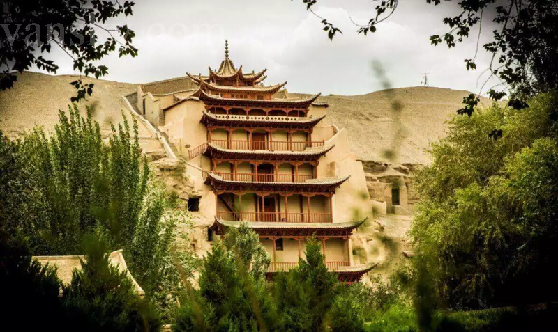 在广垠的沙漠中,莫高窟就是这片绿洲中人类的奇迹,是一座名副其实的文物宝库。同时也让我想起了最近很火的那首”沙漠骆驼“。