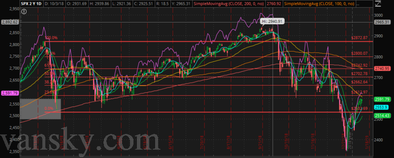 从基本面和大逻辑上我们谈到美股大势已去,下面我插入简单的一张图,从技术量化分析角度和投资者获利收割行为角度也看看趋势。这是从2009年1月1日到2019年目前的美股标普500指数,截至目前总收益超过300%。年均复合增长率约13%。确实是利润丰厚舒适的10年呀。但是从2018年2月,市场波动放大。熊大熊二也都回家看看了。