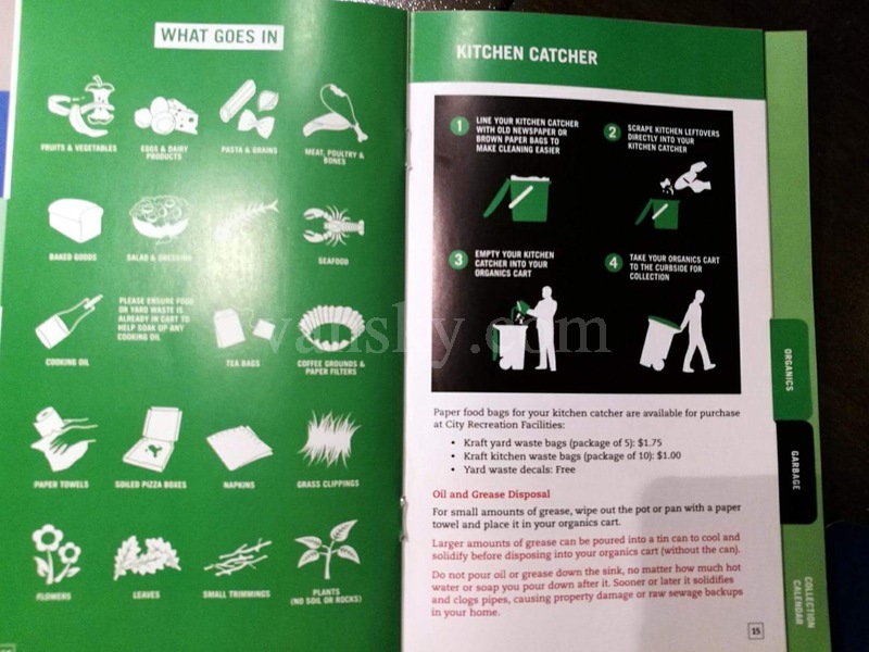 温哥华个城市的居民都可以向政府申请不同尺寸大小的分类垃圾桶(政府根据垃圾桶的尺寸大小,每年收取不同的垃圾收集费),以及各类小垃圾箱及垃圾分类袋(大部分免费,居民可以到社区的服务中心去领取。