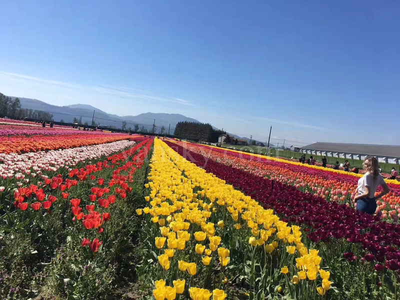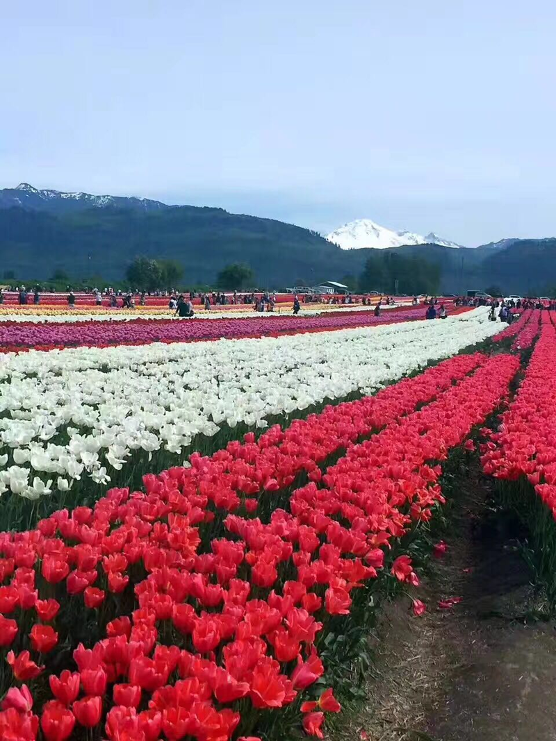 温哥华近郊的郁金香花园就像一个娇羞的蒙着面纱的新娘,不进入园中是看不到她的真容的。虽然平时也常看见花圃中小片的郁金香,但感觉就是一种花;也见过朋友发的大片郁金香图片,可总感觉缺点什么。