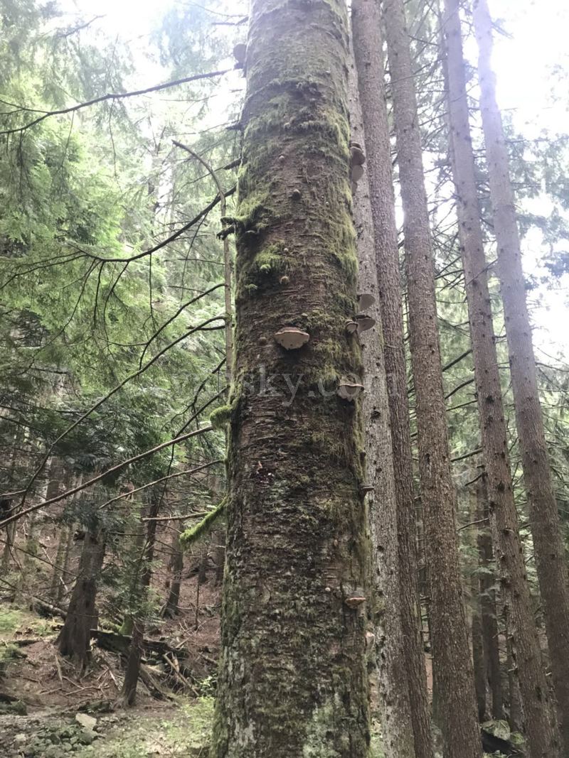 在一棵树上,我们发现了很多灵芝,它们象插在树上的白白的贝壳。按政府规定,这是不可以採摘的。走山的队伍都知道,也都遵守。据说有人偷偷自己摘取,带回国内,也有人挨罚了。实际上这不是灵芝,是舌芝,也有些药效。