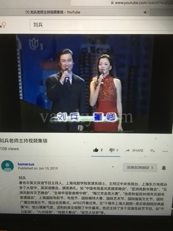 后来,刘兵成为著名的汉英双语节目主持人。他主持过中央电视台,上海东方电视台多个大型中英双语晚会,颁奖典礼,如“中国电视星光奖颁奖晚会”,“亚洲风新年晚会”,“五洲风新年文艺晚会”,“全球华语歌曲榜中榜”,“梅兰芳金奖大赛”,“张君秋诞辰90周年京剧名家演唱会”,上海国际电影节电视节,国际模特大赛,国际艺术节,国际服装文化节,国际广播交响音乐节,残运会闭幕式,APEC开幕式等。 在“千禧年上海大剧院-悉尼歌剧院经典盛演”中,他以儒雅气质,流利的英文倾倒了中外嘉宾。