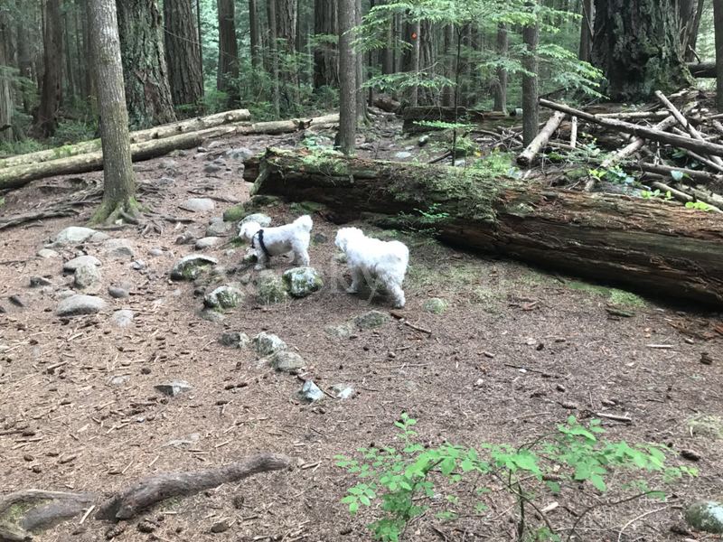 兴趣所至,Patricia向我们介绍了我们这里的三种主要的树种(Douglas fur, Cedar , Hemlock)。其实我们现在在山里见到的绝大多数树,都是经砍伐后再生的。在途中,有两棵斧底余生的道格拉斯树,已辟为一景点,可惜我们在兴高采烈中错过了。树是顽强的,就象仲抒说,为了上面的树笔直挺拔,下面的根不惜千弯万曲。看到了这莽莽苍苍的树林,我们不禁为这自成体系的森林生态的蓬勃的再生能力惊叹。