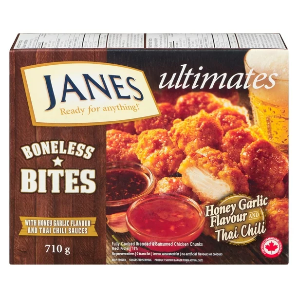 有点热。有点甜。所有这些都包含在一口小零食中。您一定会喜欢 Janes 终极蜂蜜大蒜和泰国辣椒无骨咬一口!这些薄薄的面包屑由整块肉质白鸡胸肉制成,并涂上我们美味的蘸酱,使其成为分享、沙拉或炒蔬菜的完美搭配。您可以选择蜂蜜大蒜或泰式辣椒酱,用 Janes 蜂蜜大蒜和泰式辣椒无骨咬片制作任何东西 - 唯一阻止您的是您的想象力。准备好珍妮蜂蜜大蒜和泰式辣椒去骨小吃。