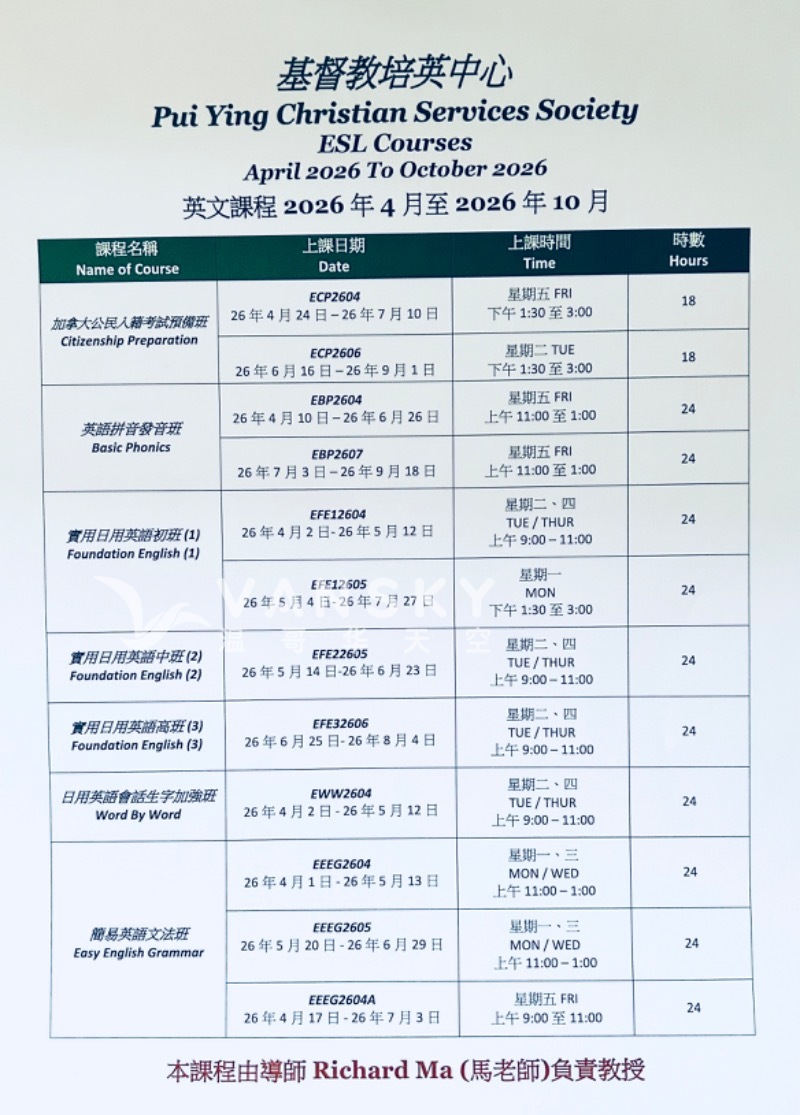 列治文培英中心為非牟利機構,現為社區提供地道日用廣東話課程協助各移民及居民提升多種語言能力,盡快投入加拿大生活及職場。名額有限,報名從速。