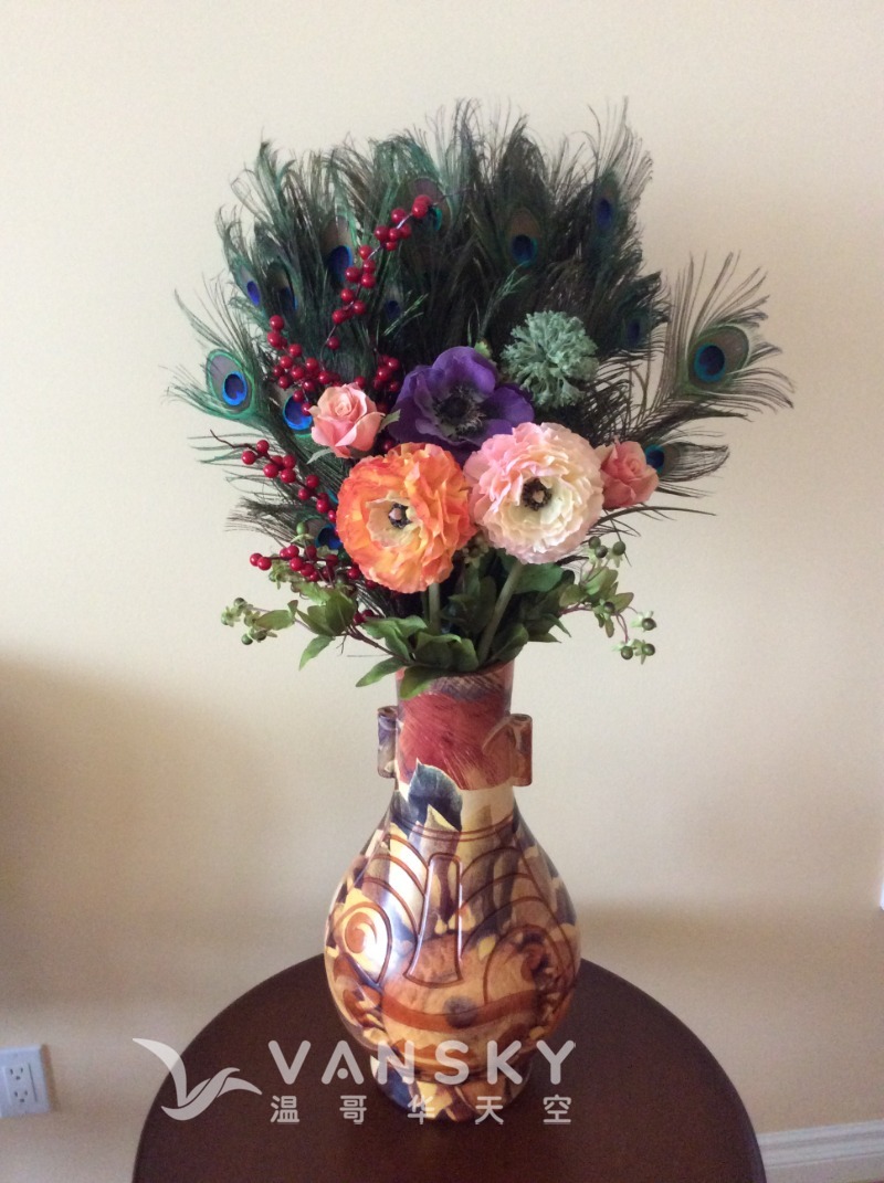 装饰花连大理石花瓶(花瓶高50cm连花总高100cm)40元