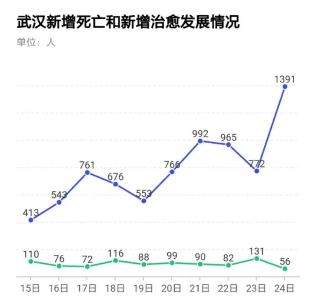 从15日以来,新增治愈病例人数一路高歌猛进,现在每天已经到了1391人,是10天前的4倍。