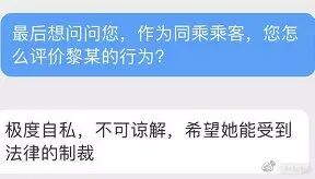 同航班乘客表示,不可谅解,希望她能受到法律的制裁。