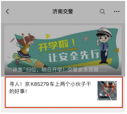 全网搜寻的京K车小哥“爆红”,他却说……- [128] (2020-09-07 08:30:13) (0) (0)全网搜寻的京K车小哥“爆红”,他却说……09-06 22:06近日,山东济南交警 发布一则“寻人启事” 寻找驾乘京K牌照商务车的两位小哥 两人在高速公路上 搬离了阻挡交通的轮胎 之后却悄然驶离
