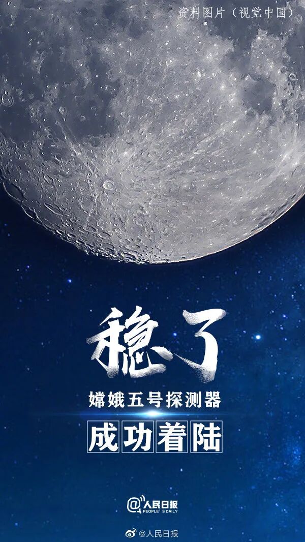 国家航天局消息,刚刚,嫦娥五号探测器在月球预选着陆区成功着陆。