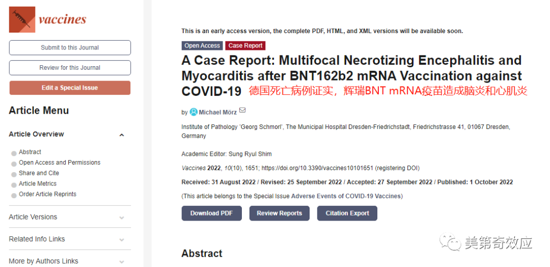 这是第一次实证病例证明,mRNA可以引发致命的脑炎和心肌炎。