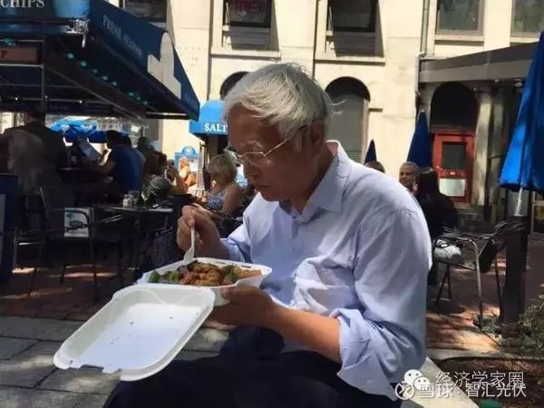 上街了就买个盒饭在马路边上坐下开吃。