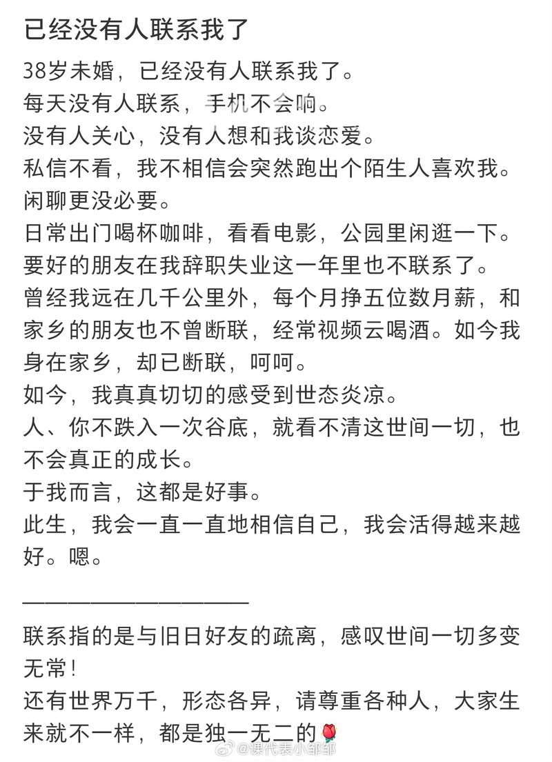 38岁未婚,已经没人联系我了- [1189] (2024-09-01 13:09:37) (0) (0) |
