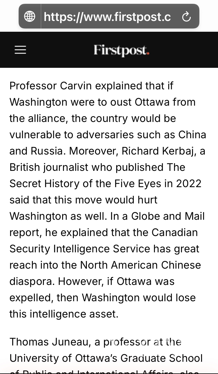 我们有独特的高价值华人情报。”加拿大媒体甚至专门请了一位情报专业人士背书证明说在截获并提供外国信号情报(SIGINT)方面,加拿大尤其有价值。