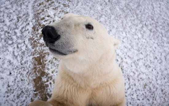 北极熊“骚扰”摄影师 被拍下呆萌大头照