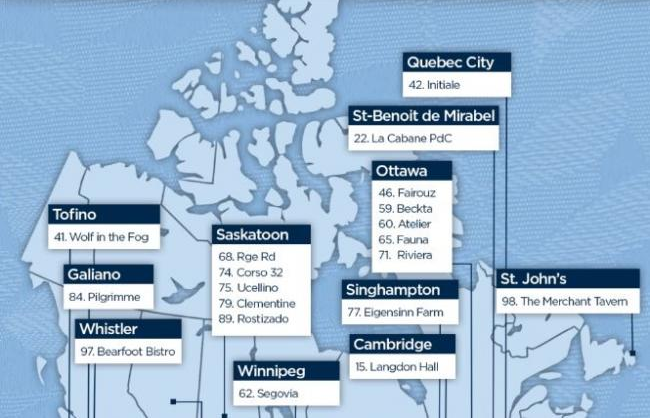 BC省内上榜的餐厅还有Tofino的Wolf in the Frog (41), Galiano 的 Pilgrimme (84), Whistler 的 Bearfoot Bistro (97)。