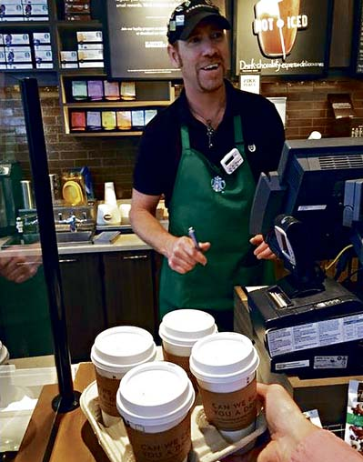有客人获赠免费咖啡后,开心拍照留念。 twitter