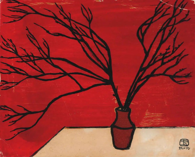 常玉《枯枝》1962年,石版四色纸本裱成贺卡,14.8 x 18.4公分