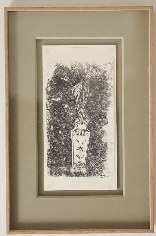 常玉《瓶中荷花》1930年代,橡胶版黑墨宣纸,19.6 x 12.3 cm版画左下方印有中文名以及法文签名