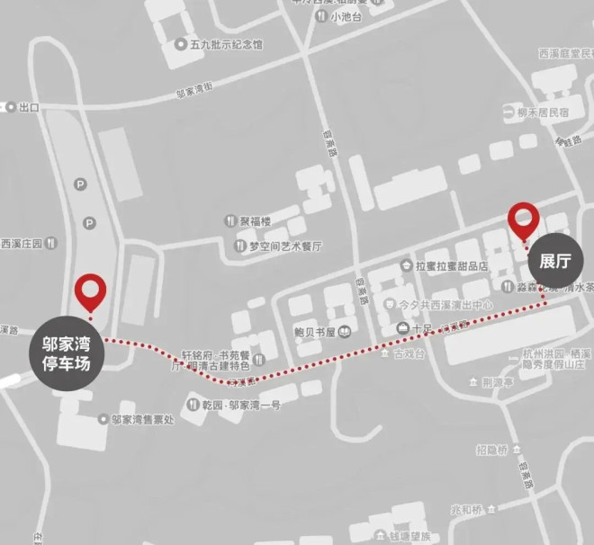 路线说明:下车后经西溪国家湿地公园邬家湾出入口入园,沿主路步行,按展览指示牌指引可达。