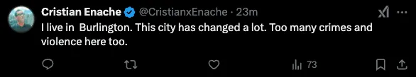 “我住在 Burlington。这座城市变化很大,犯罪和暴力太多了”